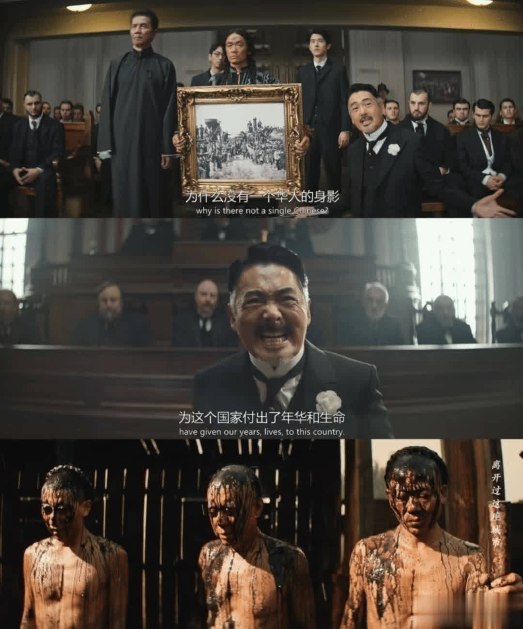 本以为到此物化,但画面一行,白东说念主本钱家在白轩龄工场钻出了石油,石油砸在了中国劳工的脸上,他们所谓的正义都是利益驱使,在出东说念主意象的场所赐与回转惊艳。