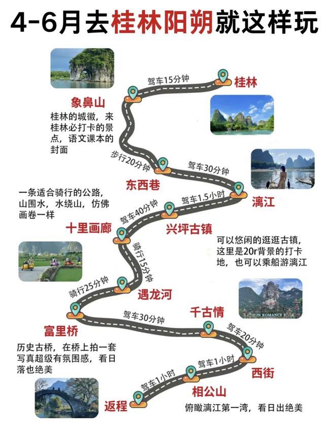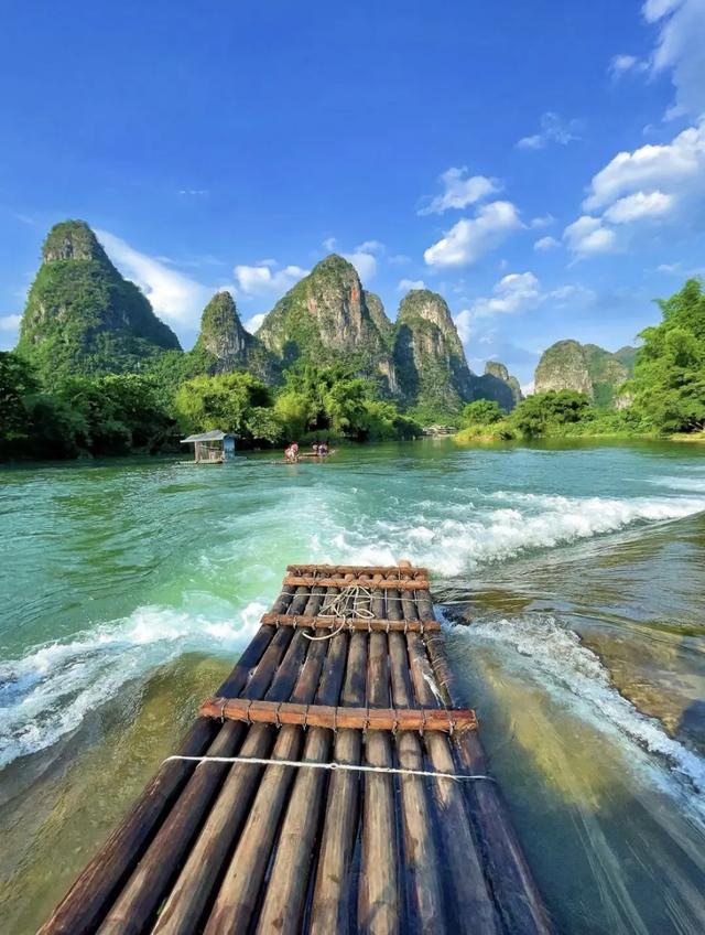 遇龙河的竹筏推开翡翠色飘荡,十里画廊的稻田刚染上新绿。西街的啤酒鱼香飘到月亮山,兴坪老寨山的日落把漓江染成琥珀色。