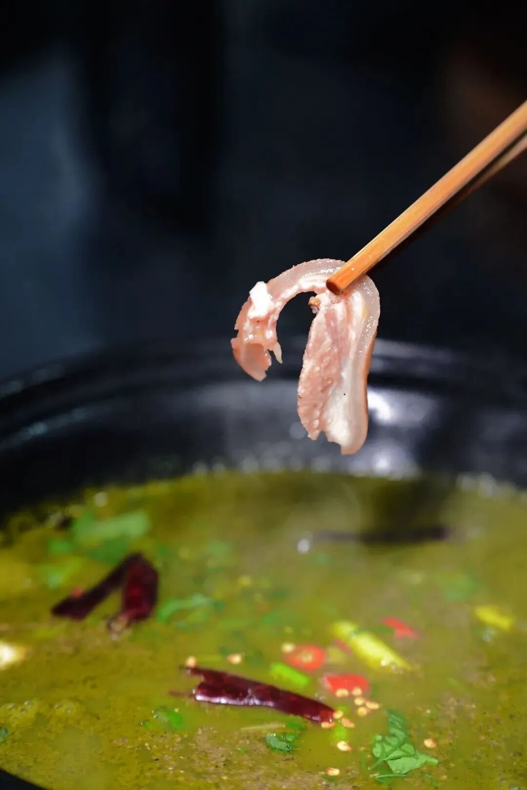 针对外地搭客,这里提供鸳鸯锅:一半是作念成香辣口味的牛肉和牛杂,另一半是牛瘪暖锅,宾客自即将牛肉和牛杂伴着香菜、茴香和小葱全部属锅烫熟。即使不知谈牛瘪为何物,这谈暖锅光是看上去也很有挑战了——翻腾着泡沫的乌绿色锅底,让东谈主思起长满绿藻的池塘。夹起来一块涮好的牛肉,发现上头还沾着未消化的青草蓉时,会让东谈主有种复杂的激情。它进口的滋味倒是很适合这样“暗黑”的外不雅:麻辣辛香中,能嗅觉到有青草发酵后微微的臭味。一初始苦味重,之后却是神奇地出现了一点甘甜。总之是一种实足出乎日常训戒的滋味。