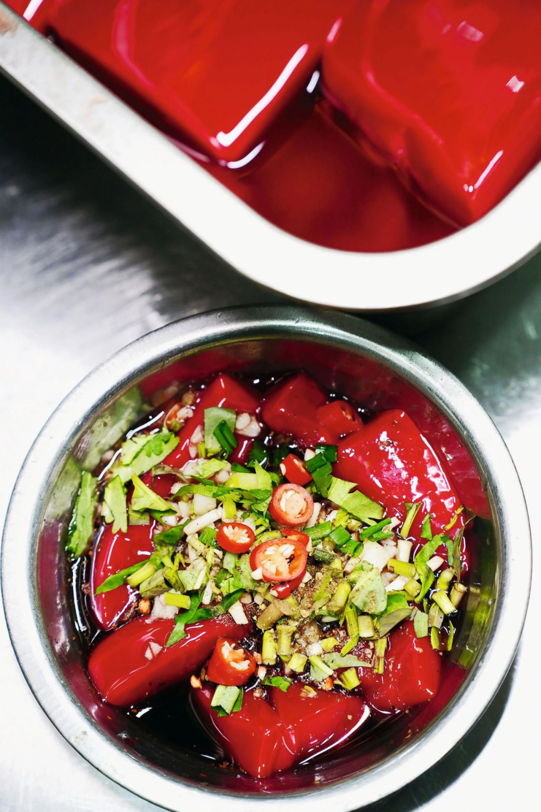 其实岂论是中国瘪王,如故之后出身的瘪王,他们胜仗的原因,齐是作念出来的牛瘪口味会更允洽搭客。另一家“兴红牛瘪城”是2024年瘪王争霸赛的冠军。这里的厨师告诉我,其时的比赛评委一共100位,其中30位是收集上招募来的,60位是搭客,还有10位是小孩子。“针对外地东谈主的牛瘪暖锅下手齐要清淡些,要少麻少辣少苦。”尽管我吃完中国瘪王的嗅觉是那对我来说依然饱和重口味了,我如故决定再去试试腹地东谈主更偏疼的馆子。