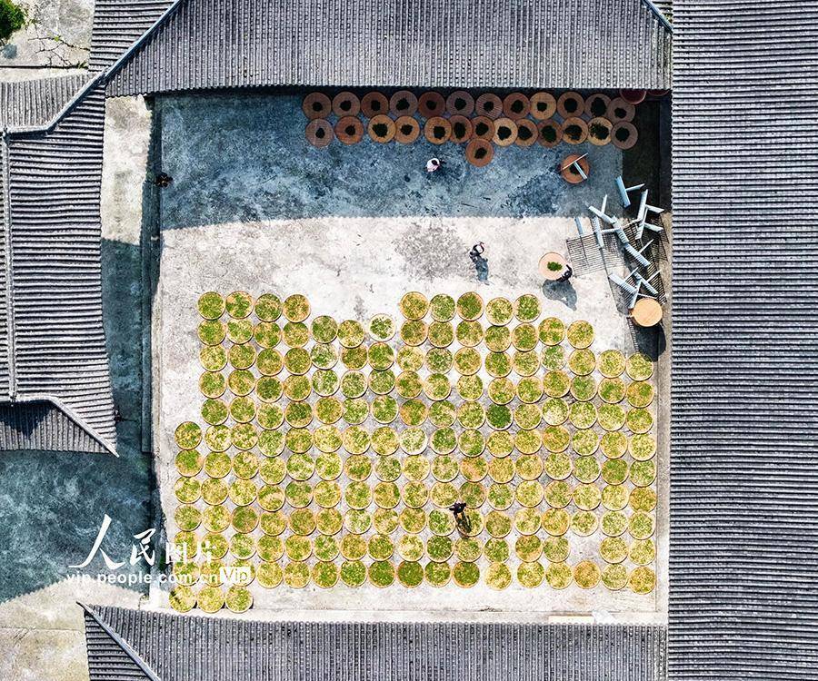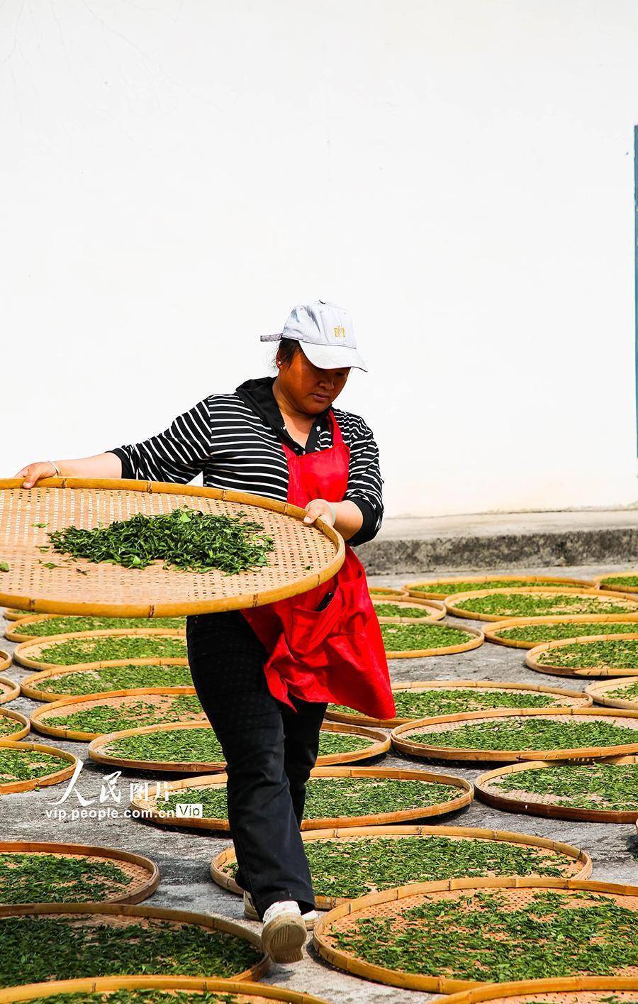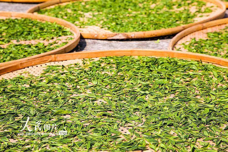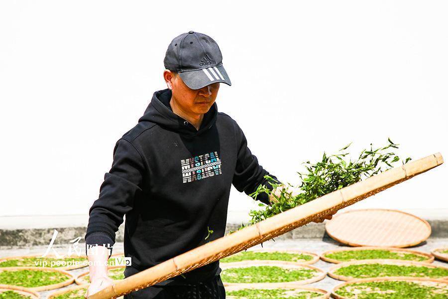 2026年4月10日,在云南省昭通市绥江县会仪镇会仪村,茶农在用摊青筛摊晾茶叶。仲春时节,云南省昭通市绥江县会仪镇峰顶山5000亩茶园延续干涉采摘季,茶农们趁天气晴好🦄九游娱乐(中国)网址在线,正把新采的春茶放在阳光下晒青。吴鑫摄(东说念主民图片网)