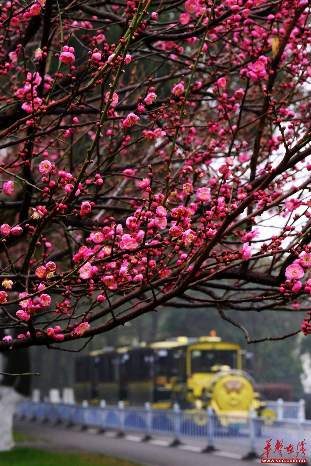 (长沙橘子洲景区,红梅怒放,如霞似火。 林说念辉 摄)