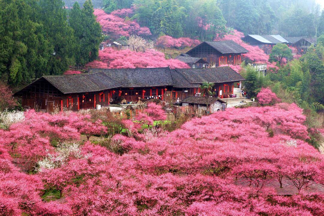 这片湘西山野深处的千亩梅林,漫山粉白,原生野趣,盛景持续至4月初。荒山变花海,是醉东说念主的现象,更是当地乡村振兴幸福花。土家吊脚楼隐于花间,宛如极乐宇宙。