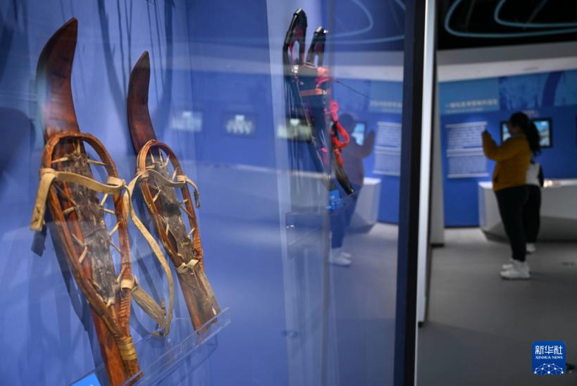 旅客在位于将军山海外滑雪度假区的阿勒泰东说念主类滑雪发源地博物馆参不雅(2025年1月24日摄)。新华社记者 胡虎虎 摄