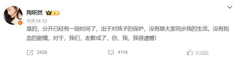 面临仳离传言,陶昕然莫得置之不睬,而是在3月25日下昼2点多发文向外界阐发了仳离一事。