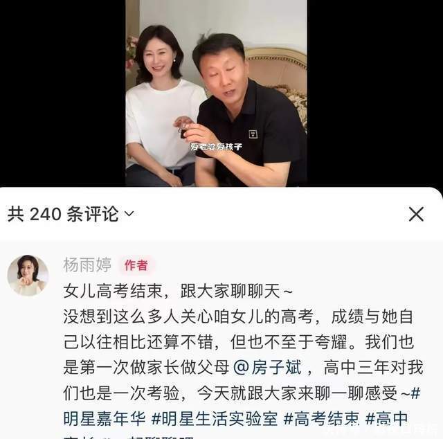 在高考放榜季演员屋子斌杨雨婷夫人果然因为对男儿的解说,对男儿高考的回答而上了热搜。一番淳厚清爽以及接地气的回答,也激发了相通高三父母的共识,以至是当作费劲的“星二代”的家长,谦卑的魄力激发了全球的热议。
