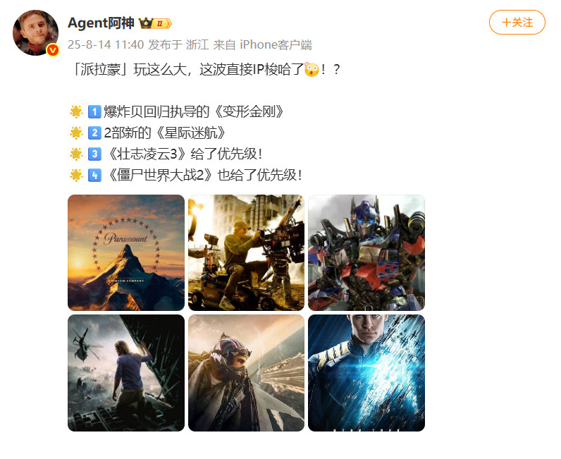 至于《变形金刚》方面,该系列在2023年推出了重启版真东说念主电影《变形金刚:超能好汉崛起》(众人票房4.42亿好意思元),由Anthony Ramos主演,旧年则上映了动画电影《变形金刚:发祥》。在派拉蒙包摄Skydance之前,派拉蒙责任室已在缔造三部不同脚本,其中有音信称迈克尔·贝将纪念抓导。如今,这些脚本很快就会交到新惩办层手中审阅。
