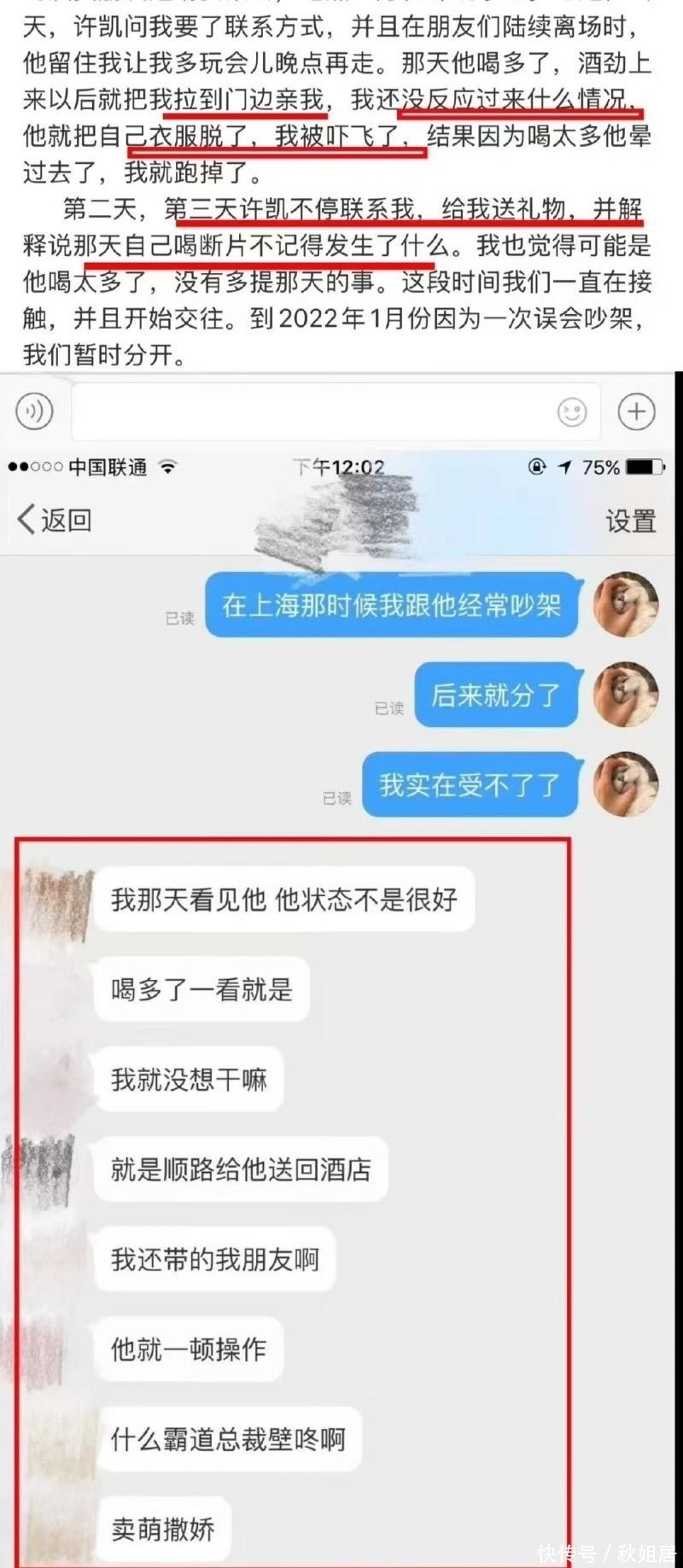 此前狗仔曾经爆料许凯在圈内“养后宫”,与多位女明星关系无极,以致波及圈外女性。