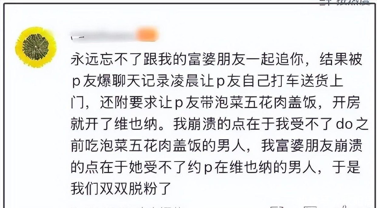 但他约见这些粉丝时,不仅条目对方主动上门,还让她们自带泡菜五花肉盖饭。