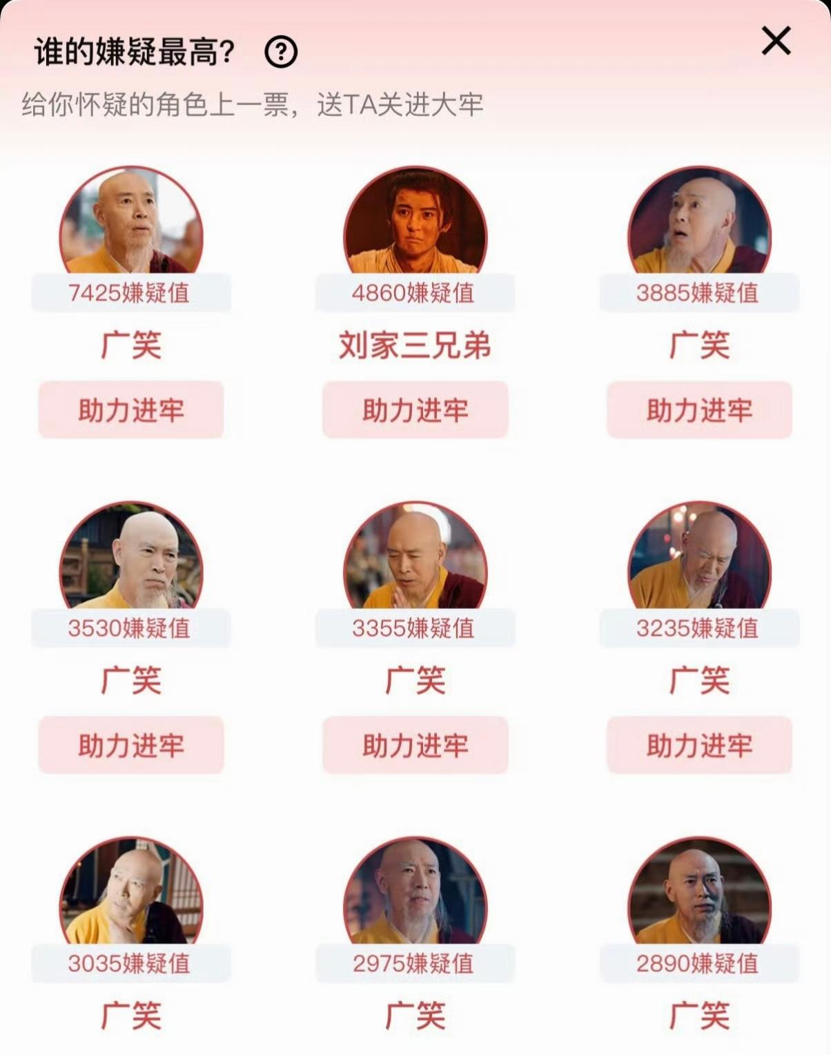 由不雅众投票的“唐诡投凶榜”中“广笑”占据8个席位。