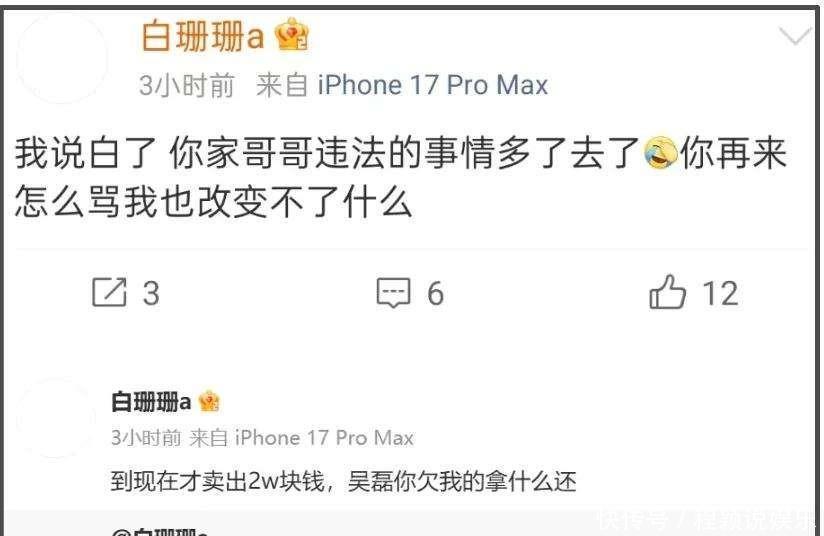 但此次辟谣没把事儿压下去,有网友翻出白珊珊账号,发现2025年11月就发过疑似说吴磊的执行,她最近又说三十岁要公开更多明星名单,更让东说念主计议的是,她小号骂过又矮又胖的东说念主强大男友,指摘区有东说念主猜是赵露念念,她没否定。