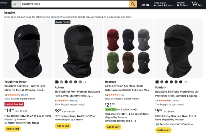 我上Amazon看了一下,最低廉的面罩也就5好意思元露面。也等于说东说念主民币50块傍边,就能让你在大街上宾至如归,ICE看了都要喊一句迎接光临。妙哉。