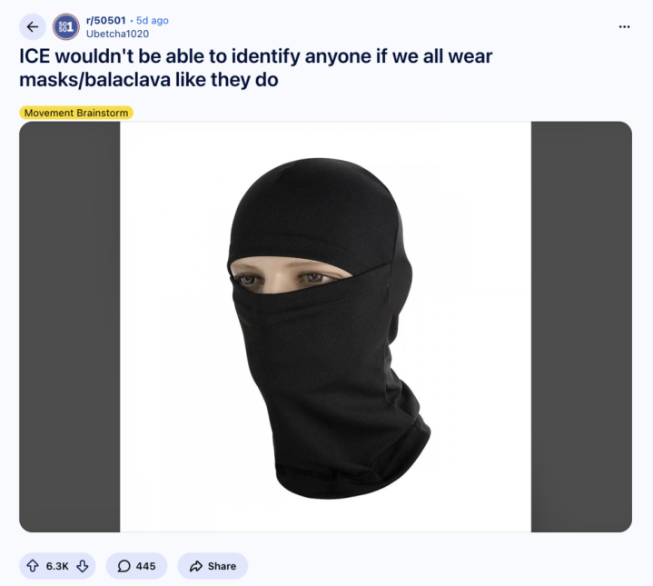 由于ICE对里面东说念主员的保护设定,他们的面部特征和具体信息都属于玄妙信息。因此,获取他们的脸部信息成了反对者们的终极方针。一些东说念主仍是运转号召女性们通过齐集软件和疑似ICE的东说念主员齐集,在套话阐明后,顺便拍摄他们的实在面庞。