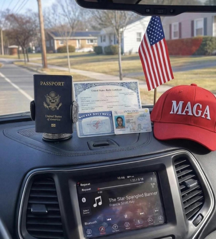 “去上班的好意思国东说念主belike:在车里摆上好意思国护照、好意思国设立施展、好意思国国旗、社会安全卡和驾驶证、MAGA卡车帽,同期轮回播放好意思国国歌。”