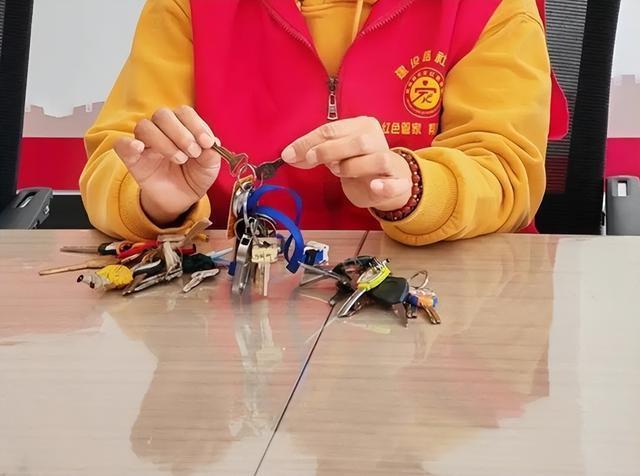 于文英在每一把钥匙上头齐贴上了标签,确保上门探望、可贵时不落下一家。(图源:黄石日报)