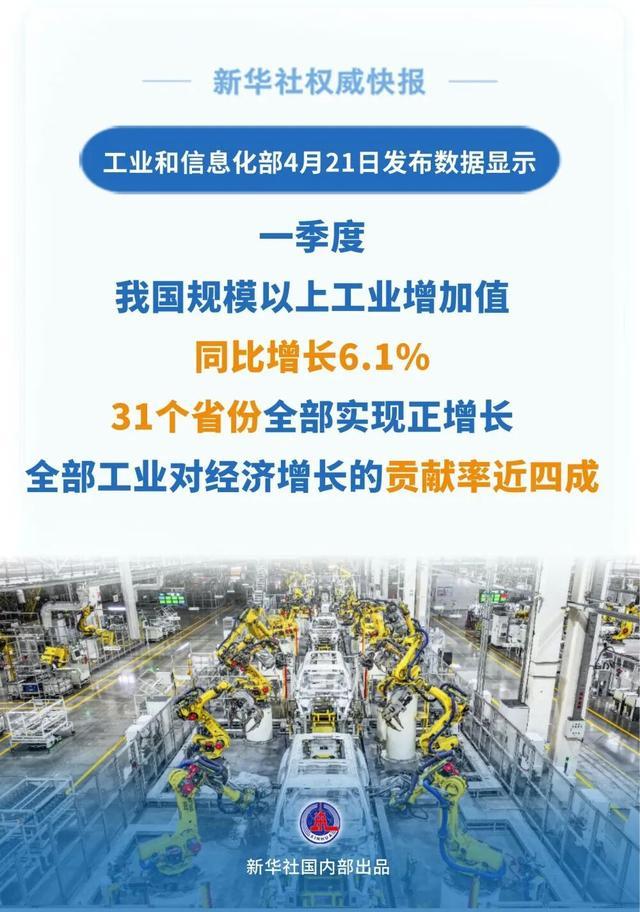 一季度,我国畛域以上工业加多值同比增长6.1%,31个省份沿路完了正增长,行业增长面超约略,沿路工业对经济增长的孝敬率近四成。