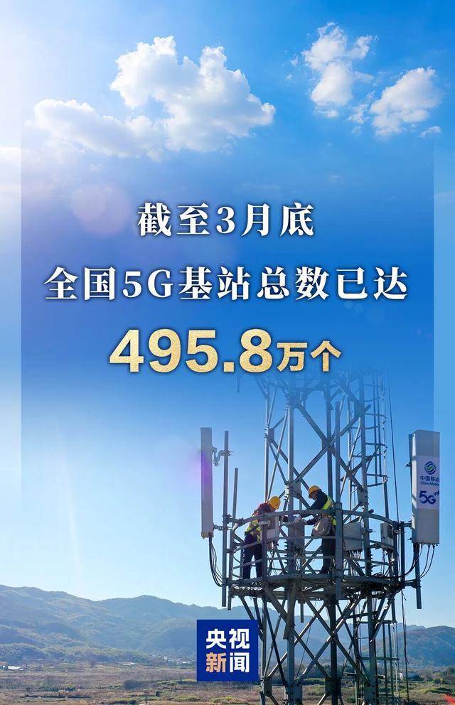 限度3月底,宇宙5G基站总和已达495.8万个。