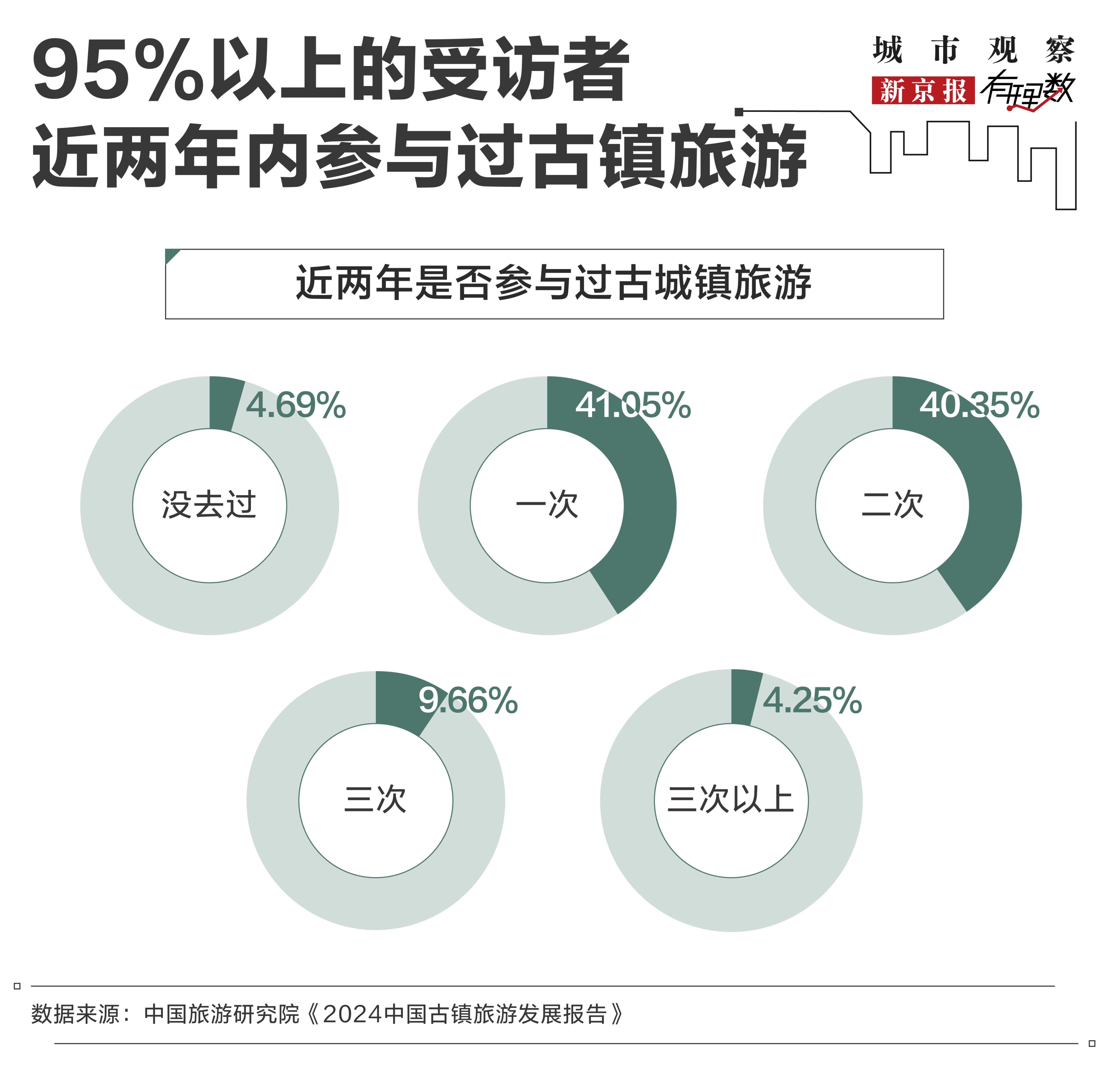 中国旅游研究院在2024年作念过一项调研,调研默契,95.31%的受访者近两年内参与过古镇旅游,跳跃半数的搭客在这两年内至少到访古镇两次。