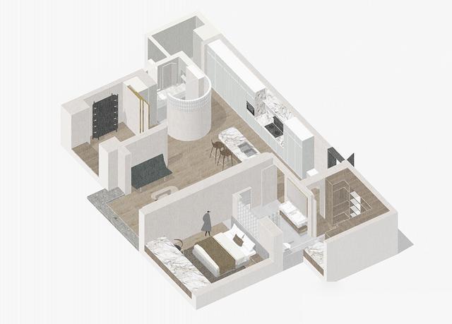 鄙俗家庭若要模仿这套决议,需要商量绽放式厨房的油烟问题,以及莫得客房时亲戚来访该如何安置。