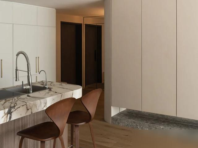 厨房被简化为简餐岛台,关于不常下厨的东说念主来说,谁还直快让油烟机成为陈列呢?这才果真将空间的价值发达到了双倍。