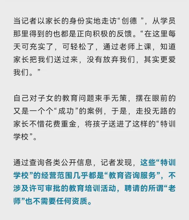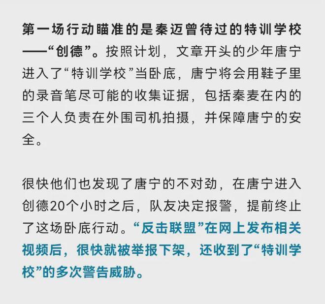 跟着采访的真切,记者发现简直是归拢时辰,另一群东说念主也在向“特训学校”发起反击。