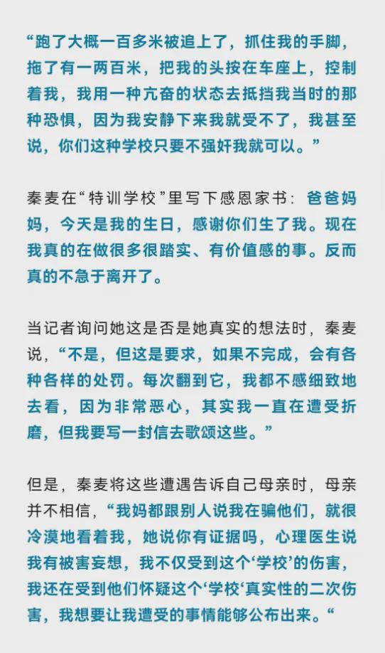 秦麦回忆在“特训学校”遭受