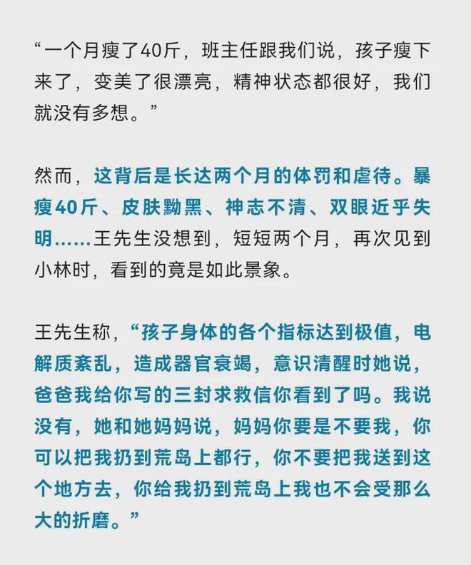 本年8月26日,王先生接到“特训学校”的见告,14岁的男儿小林在锤真金不怕火时我晕仍是被送往病院,送医后,孩子的病情急转直下,一个月后不治身一火。