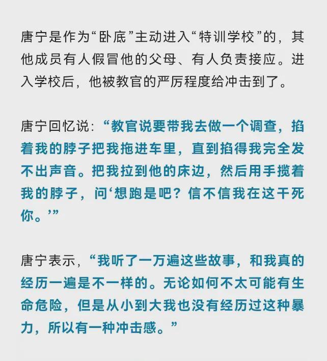 唐宁回忆在“特训学校”的遭受